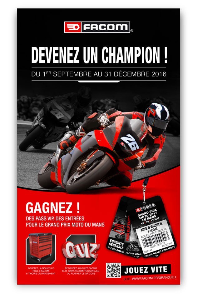 Création graphique de l’OP Facom GP Moto pour un appel d'offre.